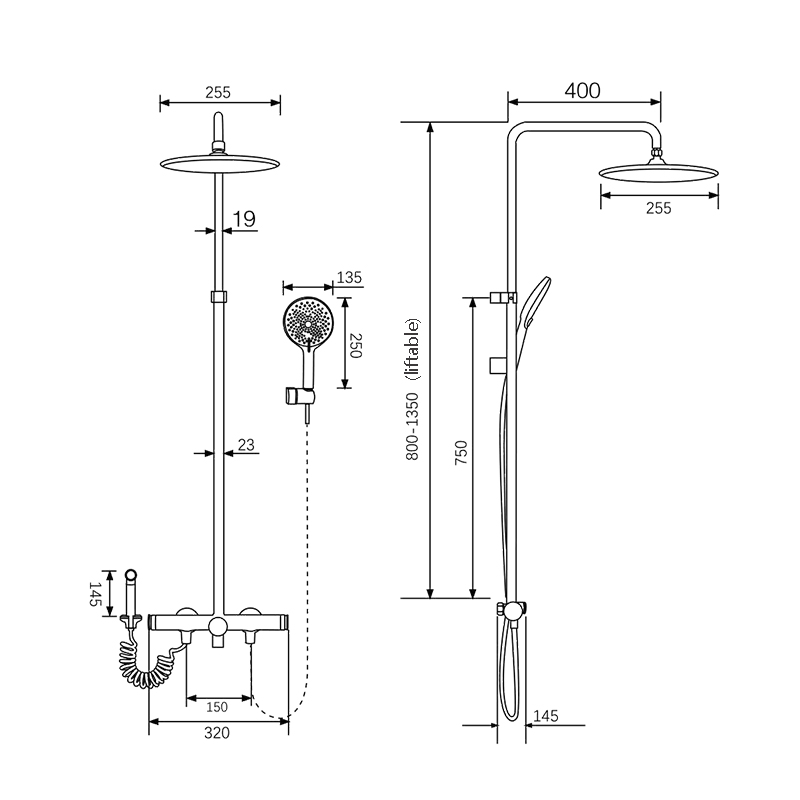 - 淋浴软管: 150mm(135-165 free adjustment)