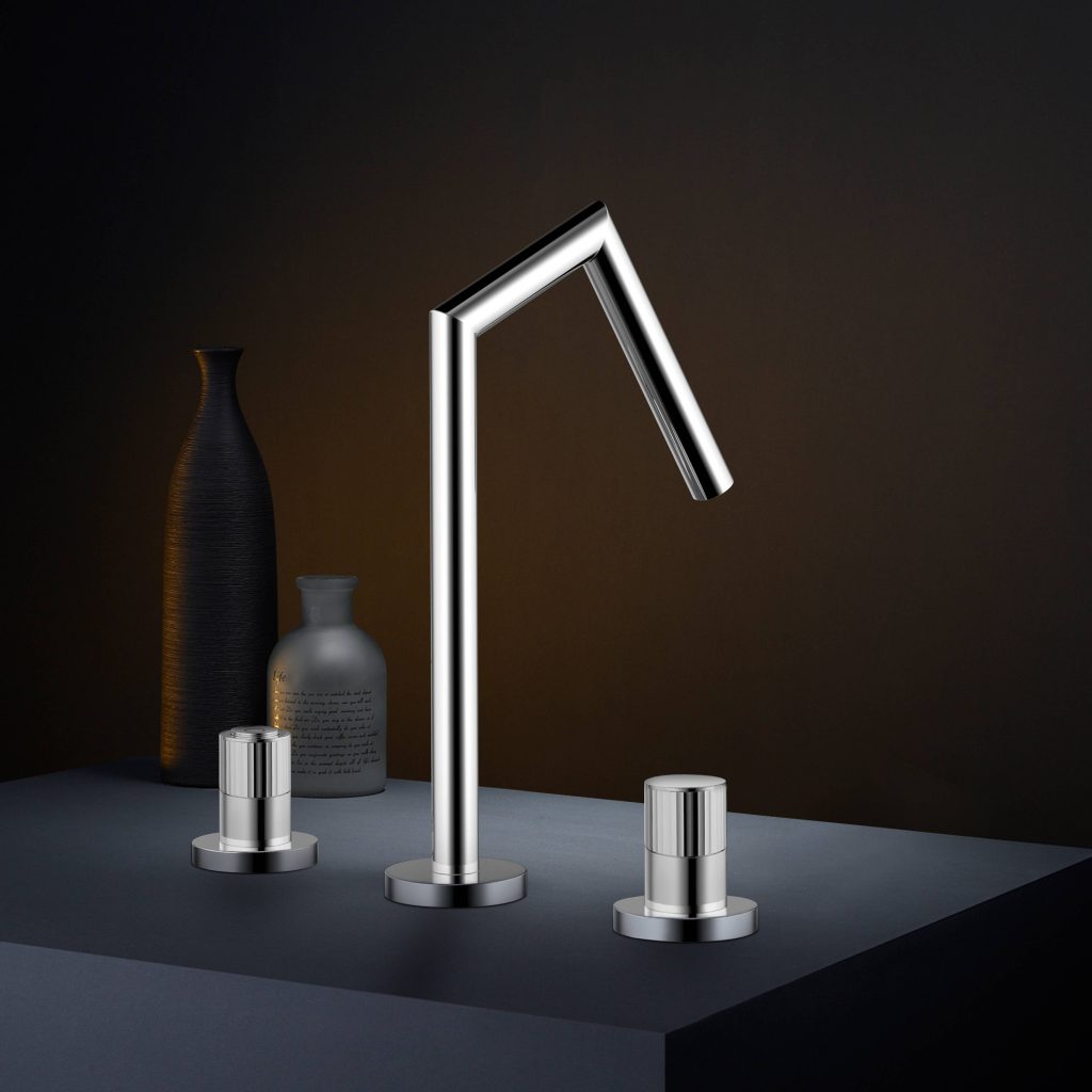 6302 Bathroom Faucet Three Hole Hot And Cold Water Deck Mounted Rotary Handle Switch Basin Tap