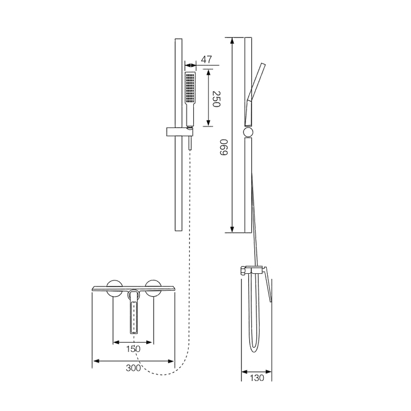 - 淋浴软管: 150mm(135-165 free adjustment)