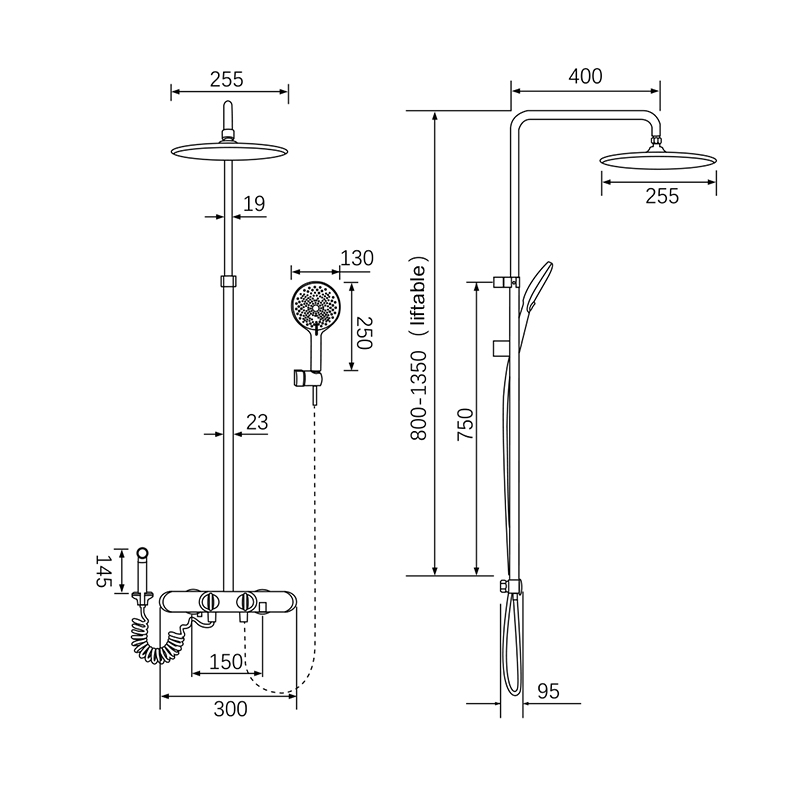 - 淋浴软管: 150mm(135-165 free adjustment)
